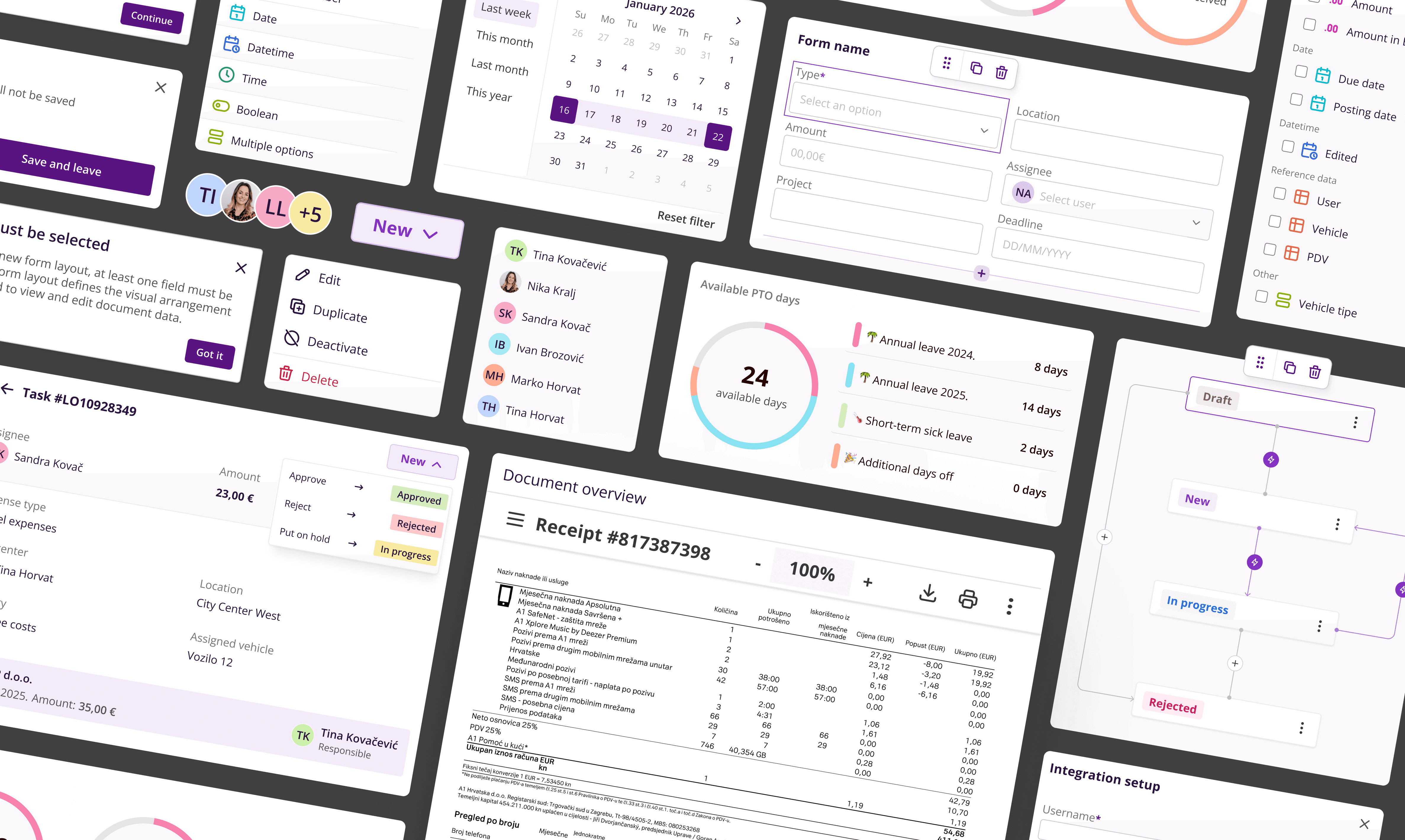 Web-based document management system that centralizes document intake, validation, storage, and multi-step approvals, supporting both cross-team review flows and automatic approvals, while keeping documents easy to filter and find.