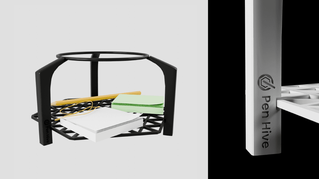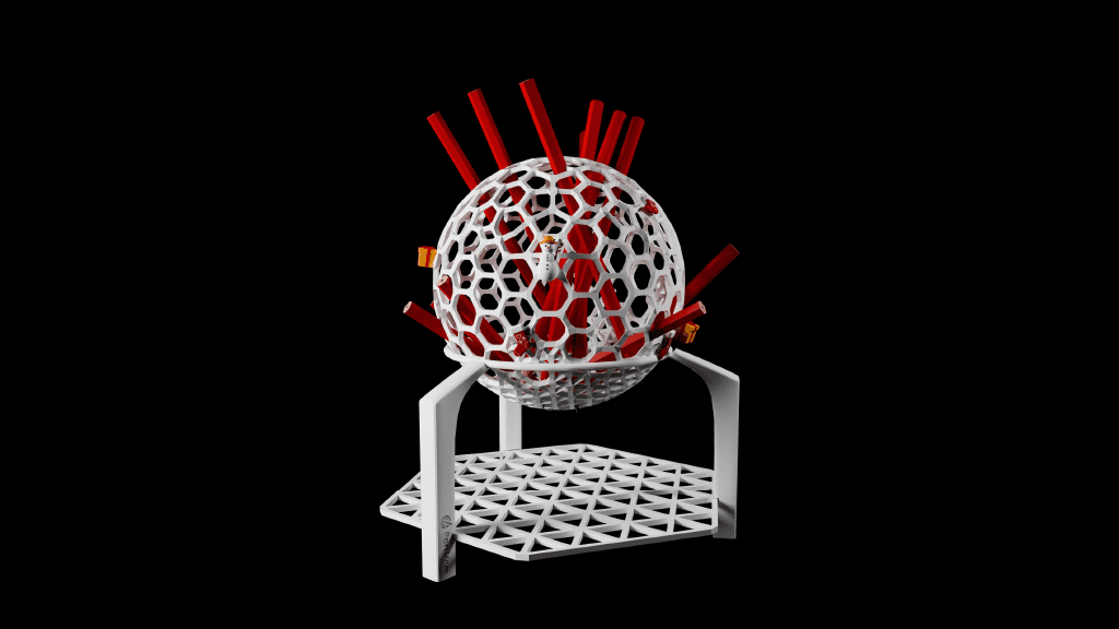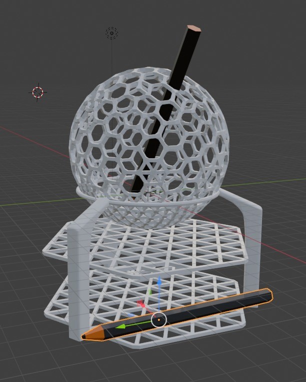 Printing the Pen Hive involved testing different materials and structures to balance durability, flexibility, and playfulness. The mesh ball was printed with flexible rubber filament to make it squishy yet strong, while multiple mesh and honeycomb variations were explored to ensure pencils wouldn’t fall through and thicker pens could still fit. The removable cone-based pins were carefully designed to stay secure while remaining easy to move.