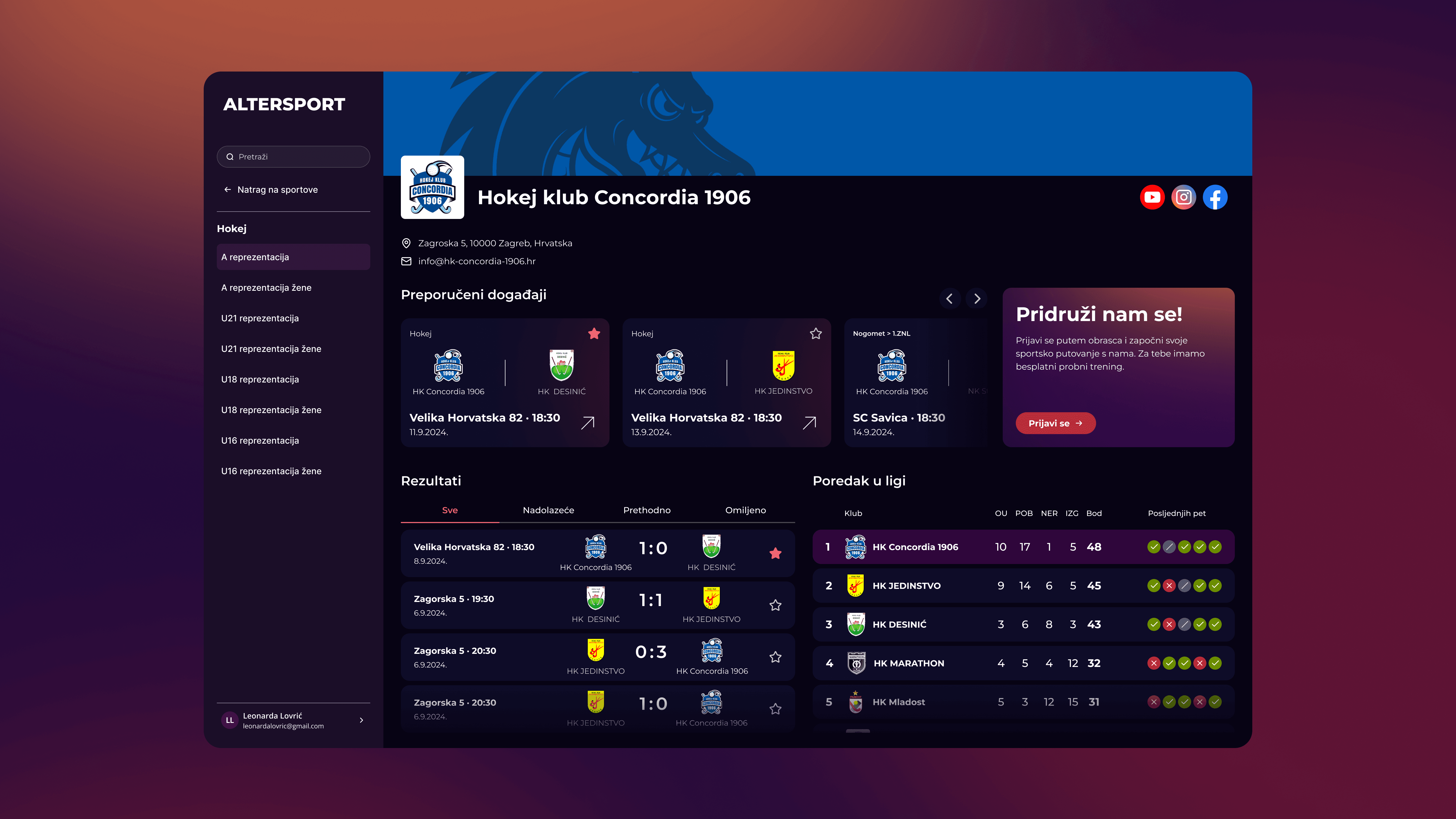 The Hackl Hackathon 2025 challenged teams to popularize sports in Zagreb, taking ideas from concept to a live demo in just 48 hours. Our team built Altersport as a recommendation-focused solution, using a short survey, personalized suggestions, starred leagues and clubs, and an interactive neighborhood-based map to help people discover and join sports that fit their interests and location.