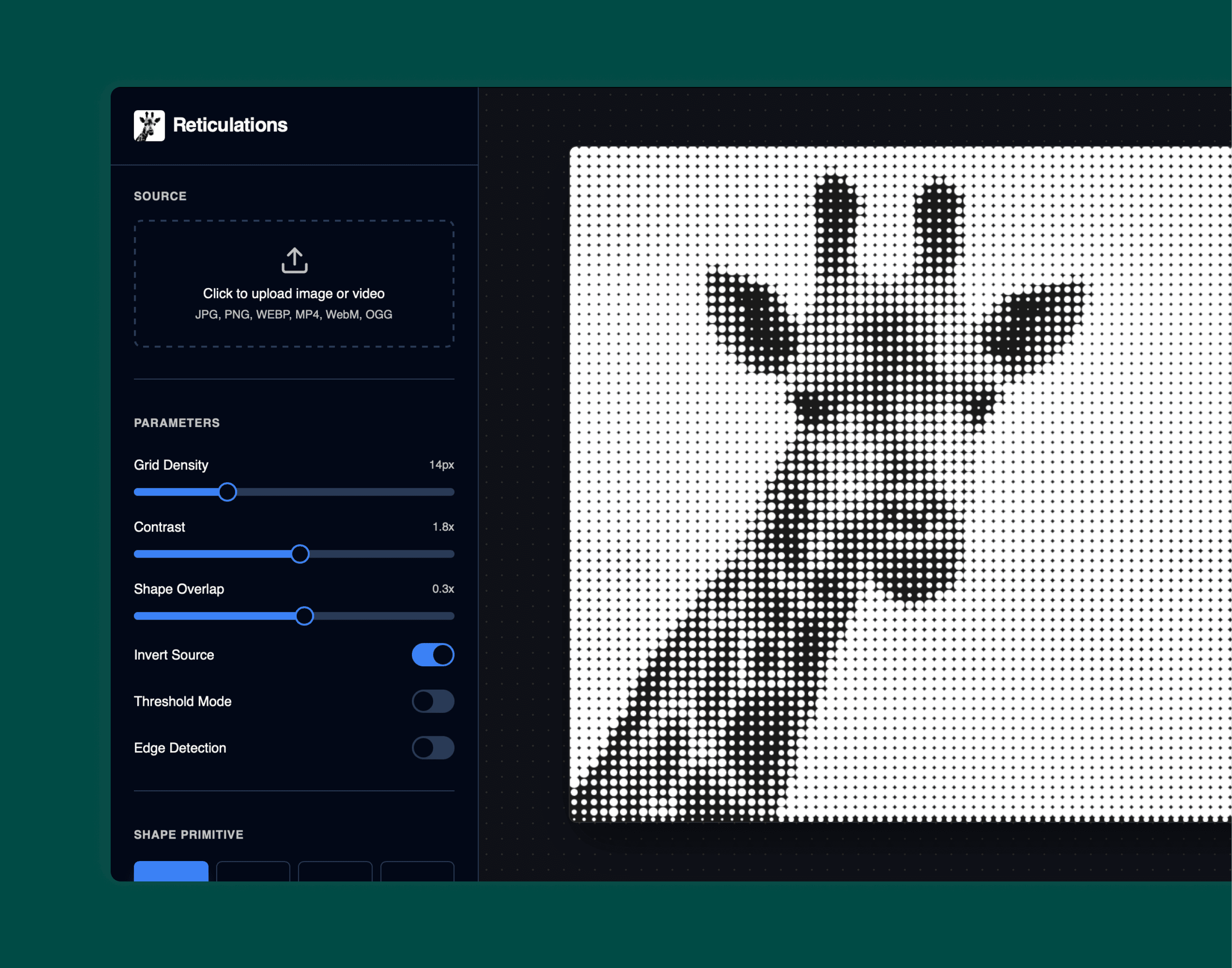 Reticulations is a generative visual tool that transforms images and video into structured meshes of primitive shapes.